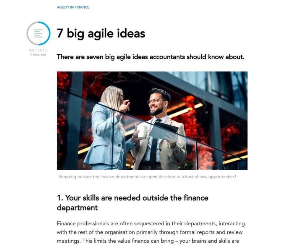 This course explores what agility really means in a finance context. You’ll learn how agile approaches can enhance budgeting, planning, and re-planning, and how they apply to day-to-day financial operations. The course also covers how to improve collaboration across the organisation, support governance and risk management, and run agile experiments to encourage innovation and continuous improvement.