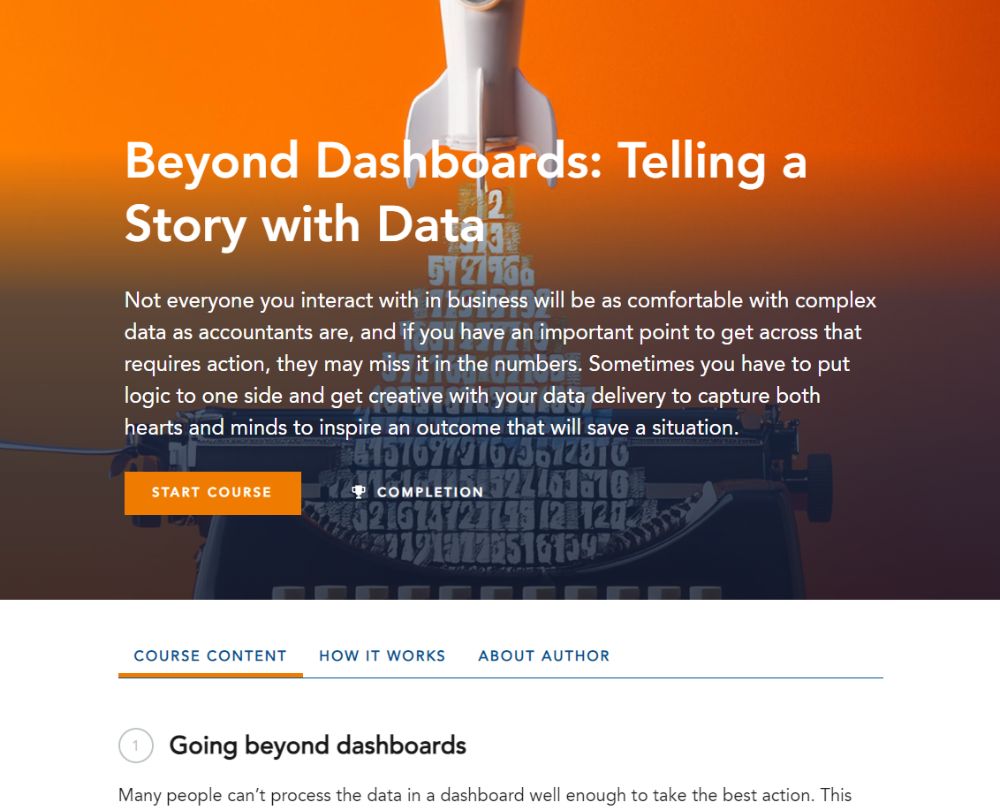 Not everyone can spot trends and concerns in data the way accountants can. To deliver a key message you often need to reframe data as a story, to engage people’s emotions and steer them towards a desired outcome. This course will help you to build a story using creative techniques and keep your audience engaged.