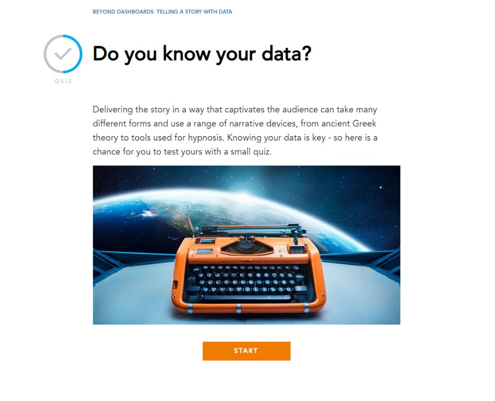 This course explores how you can create a story arc from a set of data that will motivate your audience to respond in the way you want. It explains how to apply narrative tools to prepare your story, advises on ways to engage your audience’s interest and use language to guide them to respond with appropriate action.
