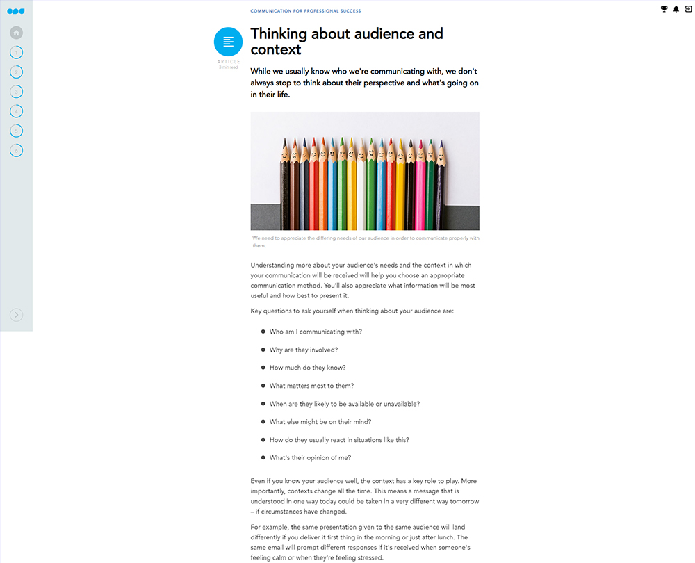 Effective communication is vital for any finance professional. Improve your listening, speaking and writing skills with this course and learn how to overcome common barriers so you can successfully communicate in a range of professional contexts.