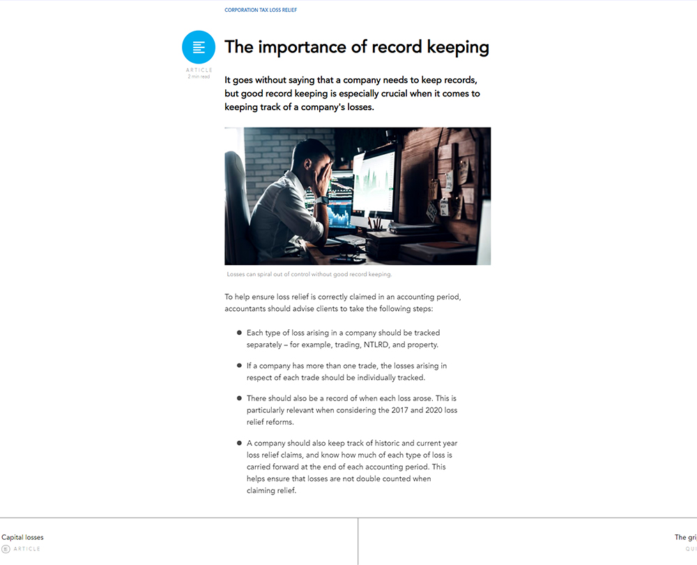 Corporation tax loss relief is a complex area. Not only do you have to contend with numerous types of losses such as trading and capital, but you also need to be familiar with the different rules and restrictions regarding these reliefs.