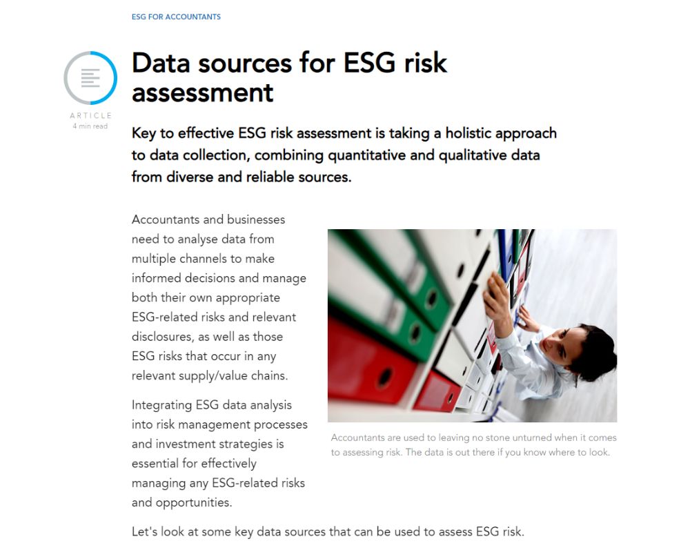 The growth of ESG has had a huge impact on businesses globally, and, therefore, on your role as advisors and reporters of financial records. This course will help you to get to grips with your ESG responsibilities.
