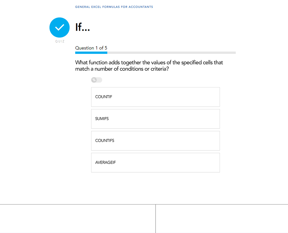 Designed specifically for accountants, this course enables you to create basic and complex IF statements and use various LOOKUP functions. It also explains how to use conditional functions, relative and absolute cell references to write formulas efficiently.