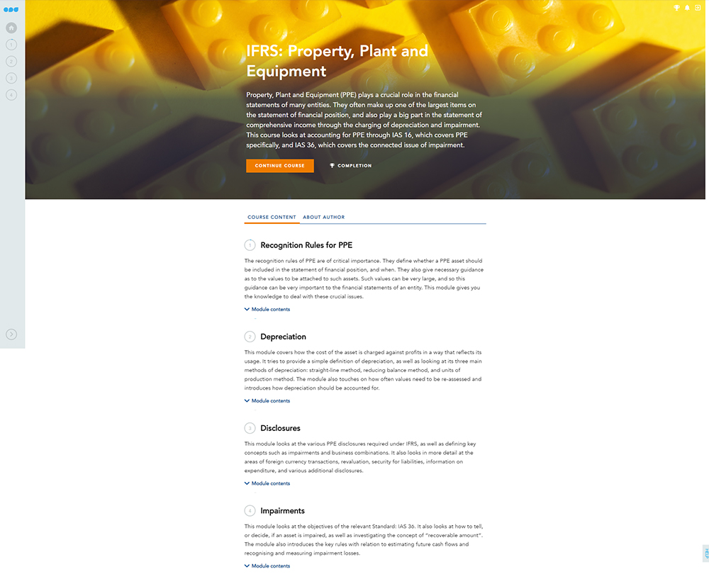 This course looks at accounting for PPE through IAS 16, which covers PPE specifically, and IAS 36, which covers the connected issue of impairment.