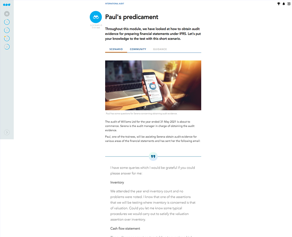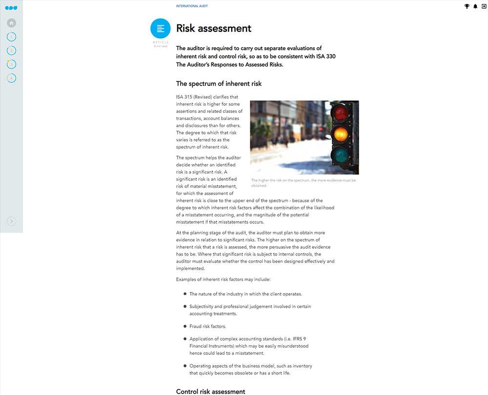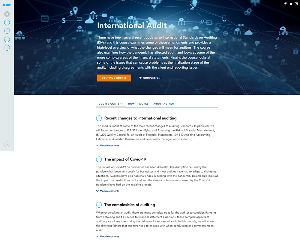 This course will keep you up to date on all the key changes in international auditing and the associated standards. Familiarise yourself with the procedures involved in obtaining auditing evidence, the key things to remember when finalising audits and issues that should be considered when delivery an opinion in the auditor’s report.