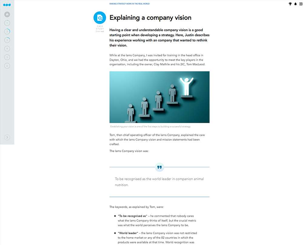 This course teaches what it means to have a strategy, and how you can play a part in forming, implementing and monitoring a strategy in your organisation. Learn to analyse trends; set targets and what tactics you can use for successful strategies.