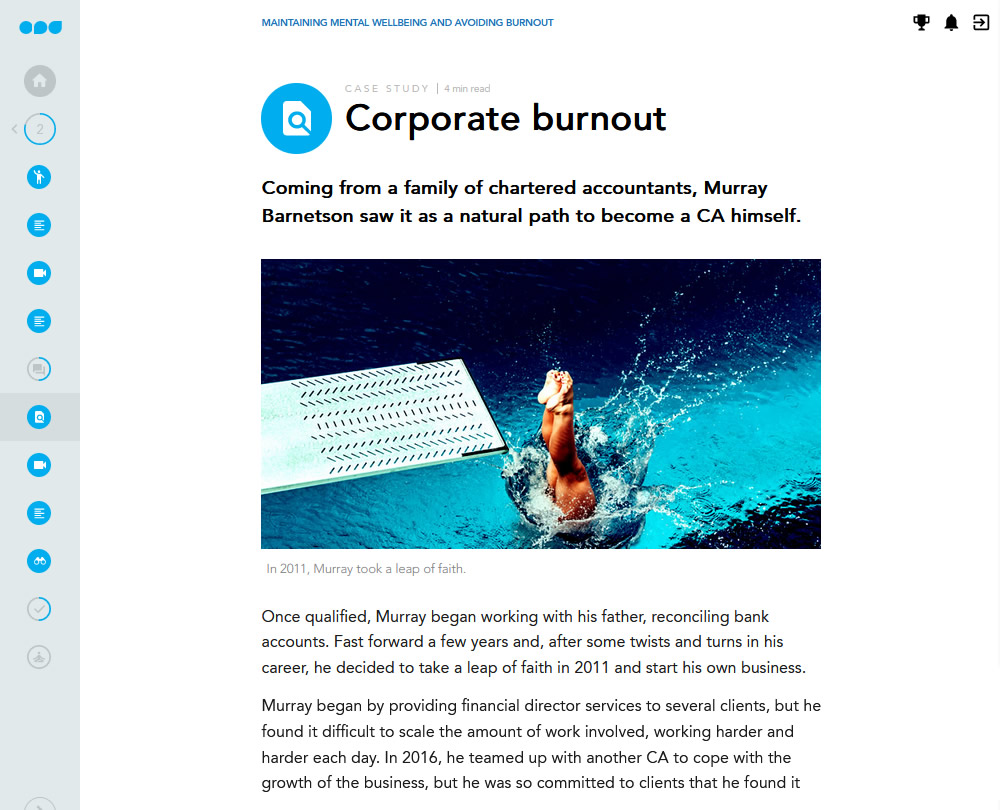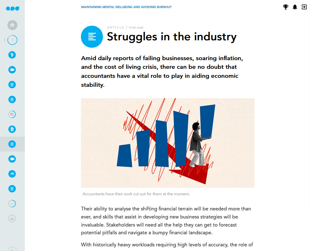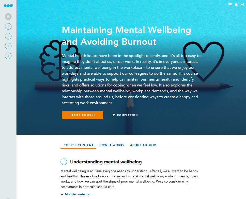 Mental health issues affect more than half of all accountants and account for the majority of days lost due to ill health. This course offers practical ways to help us maintain our own mental health and help to create a happy and accepting work environment.