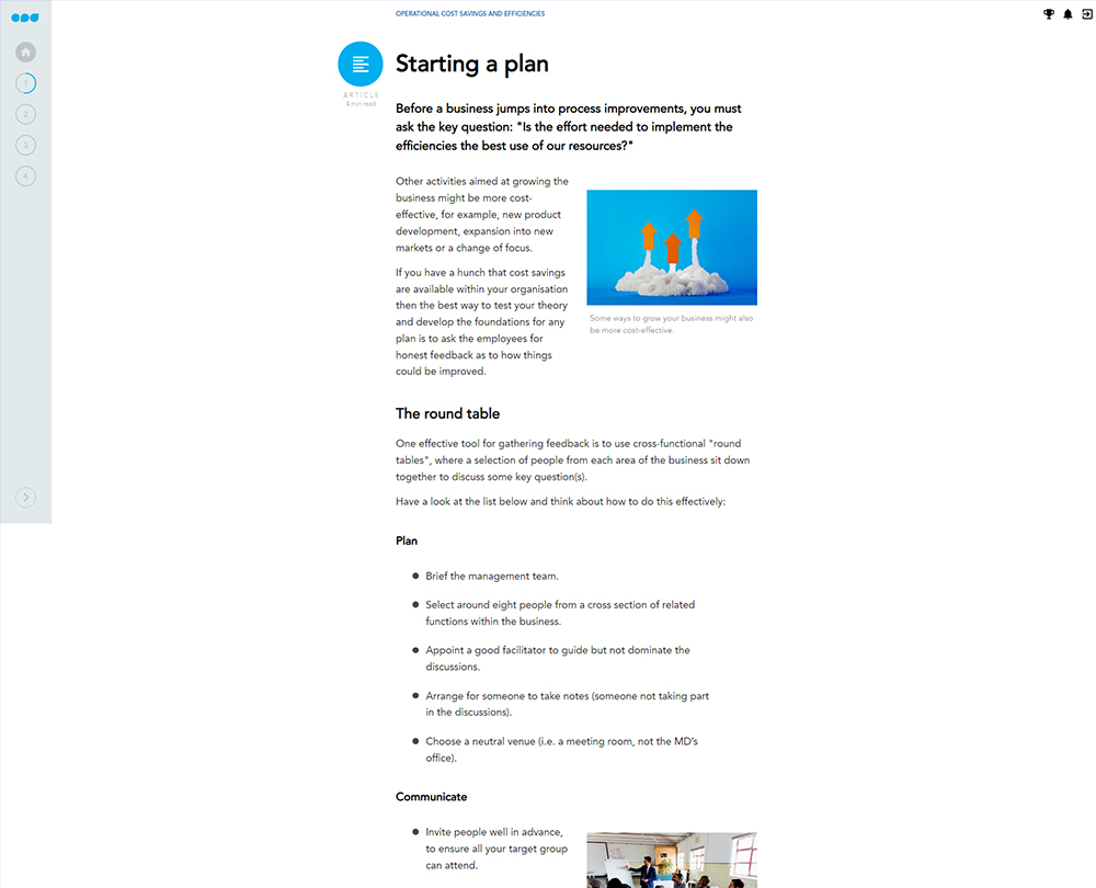 This course provides a framework to help you improve your organisation’s efficiency. It helps you to analyse your business, consider where to best focus your resources and review how to balance short-term cost reductions with longer-term business needs to ensure a secure future for your business. Discover how to best plan your cost savings and, once you have decided on your plan, how to deliver this project and manage stakeholder expectations.