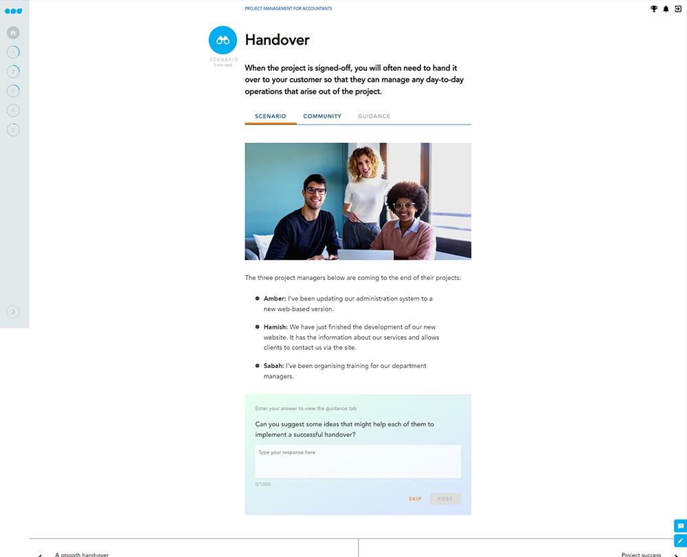 This course explores professional project management tools and techniques that you can use, as an accountant, in your day-to-day role. From defining the project through to completion and evaluation, this course will take your project management skills to the next level.