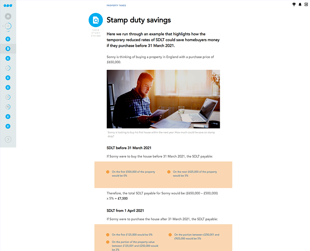 • Guide your clients on other property taxes issues including recent developments to stamp duty land tax (SDLT)