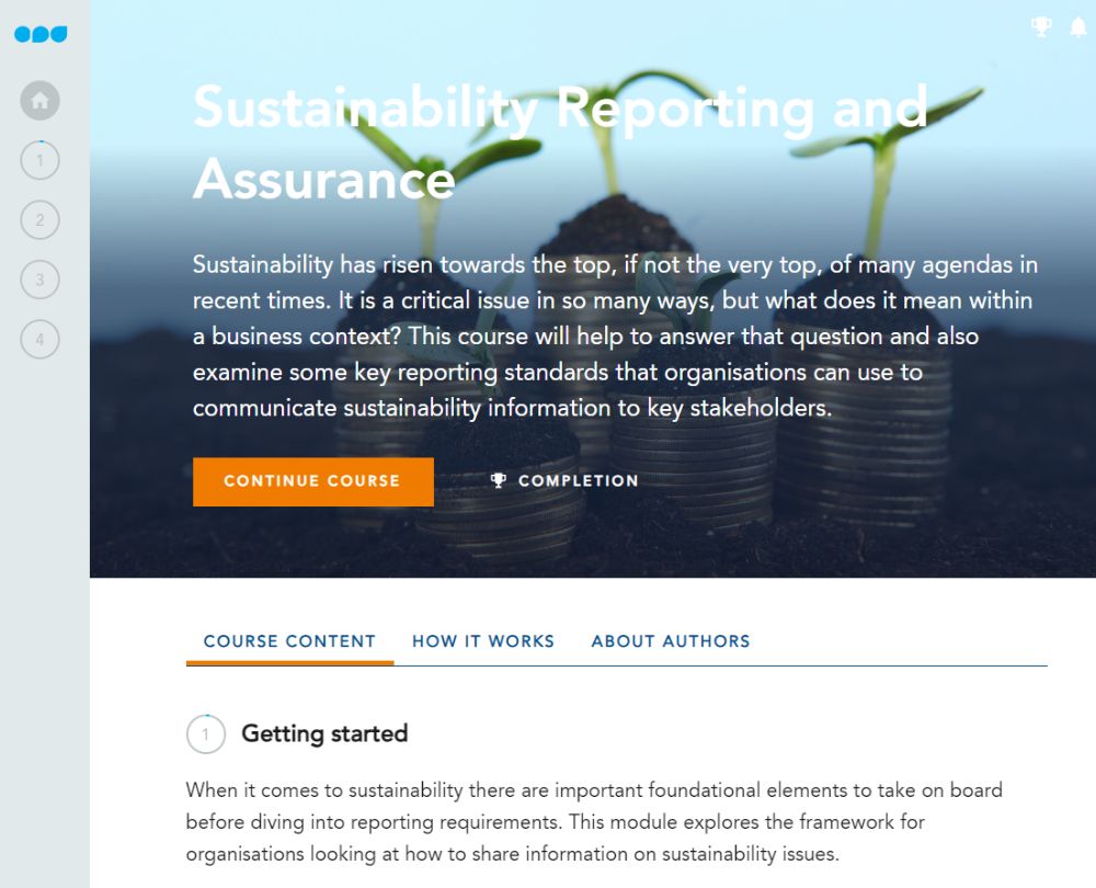 The course also explores the assurance of sustainability information and the considerations of quality and ethical issues, examining the proposed ISSA 5000 and the International Auditing and Assurance Standards Board’s International Framework for Assurance Engagements amongst other useful regulations.